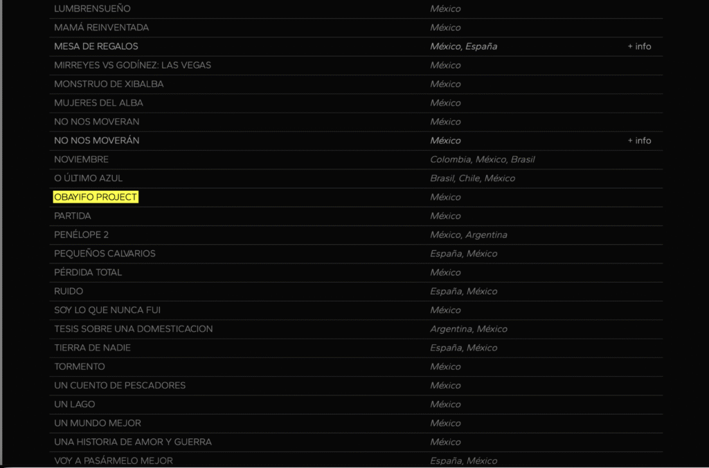 Obayifo Project, largometraje mexicano, dirigido por Paco Arasanz, ha sido incluido en la lista previa de los Premios Platino, logrando así agrandar el recorrido internacional previamente establecido.